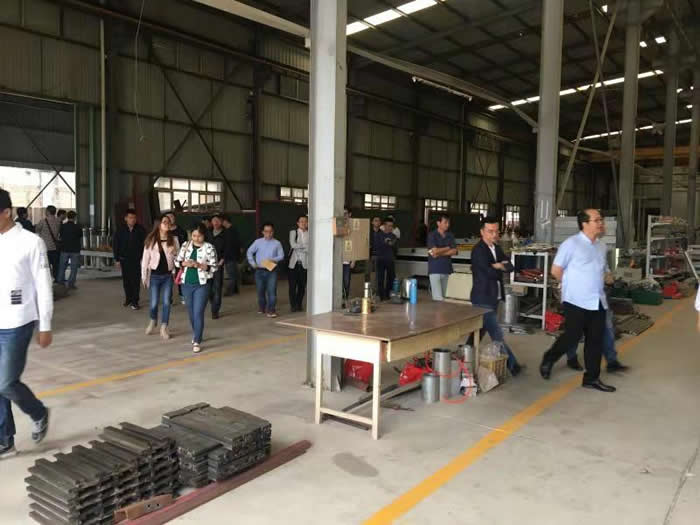 考察團隊走進園區(qū)的泉州富橋機械有限公司,劉總熱情地迎接客人參觀車間。公司主要生產(chǎn)自動翻板設(shè)備、高效自動補膠設(shè)備、自動補膠烘干設(shè)備、花崗石條板火燒機、修邊剪切、開槽等特殊機械產(chǎn)品。